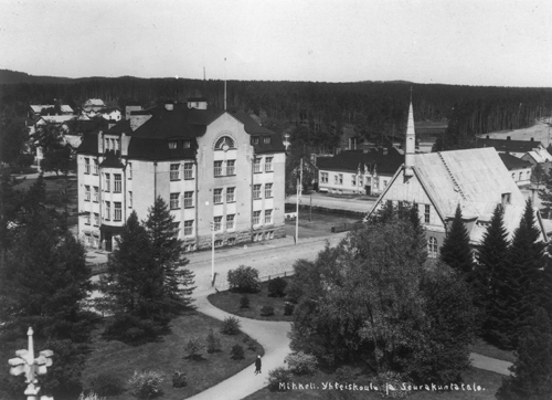 Jooseppi Sajaniemi oli ollut aikaisemmin Forssan yhteiskoulun rehtori ja hän oli perustanut Santeri Nuortevan kanssa Forssan Sanomat -nimisen lehden. Hän oli kirjoittanut joitakin paikallishistoriaa käsitteleviä julkaisuja. Sajaniemi tunnettiin paikkakunnallamme ja laajemminkin aikaansaavana kulttuurivaikuttajana. Mikkeliin oli perustettu yksityinen yhteiskoulu vuonna 1905. Sajaniemeä toivottiin sen johtajaksi ja hän vastasi kutsuun myöntävästi vuonna 1907. Ensi töikseen hän joutui rakennuttamaan koululle oman rakennuksen. Alla Mikkelin museon kuva hienosta yhteiskoulusta.