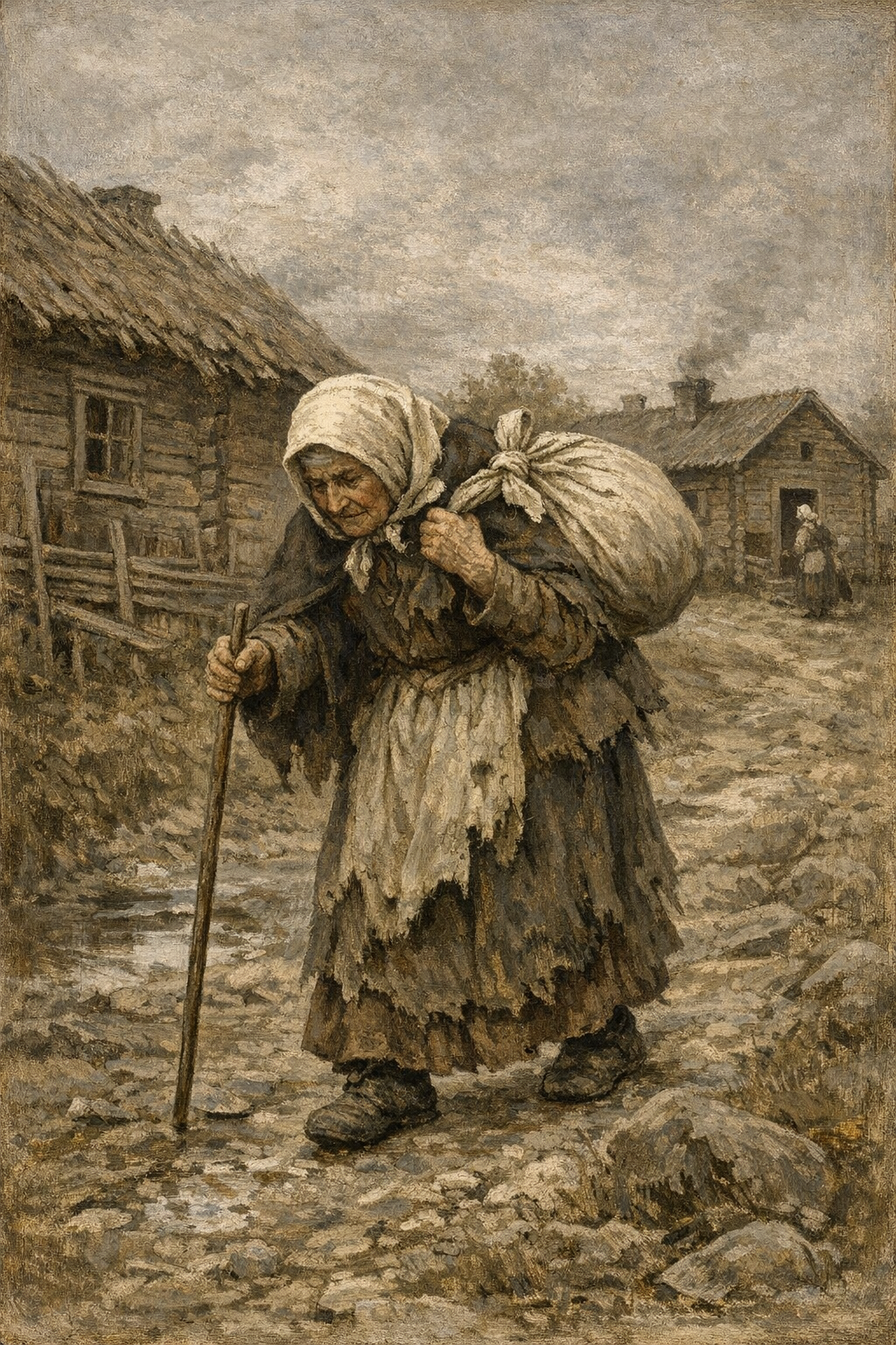 Leskeksi jäänyt vanha nainen oli 1800‑luvulla lähes aina taloudellisesti turvaton. Yksin ei voinut ylläpitää torppaa, eikä naisella ollut juridista asemaa torpan haltijana ilman miespuolista työvelvollista.