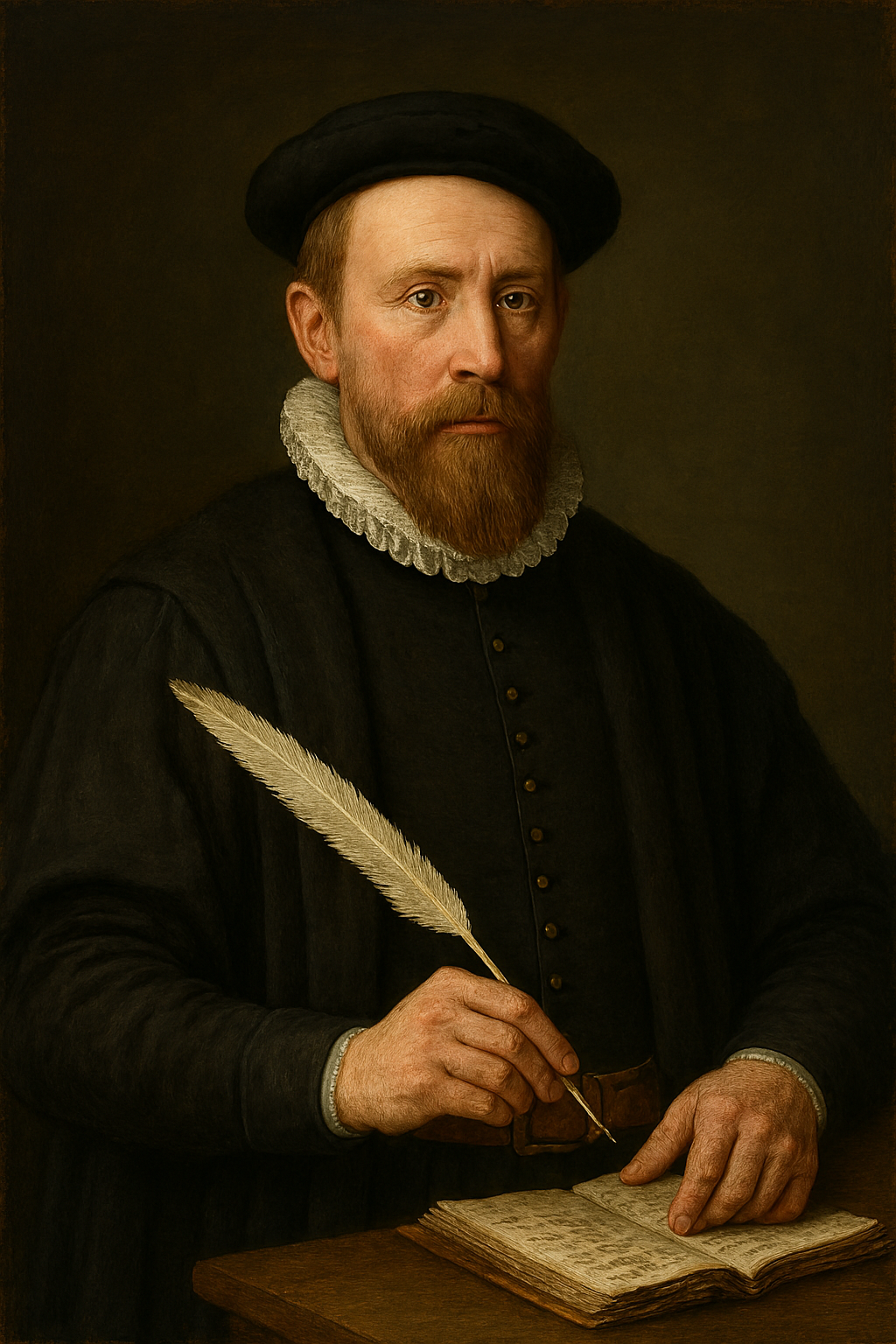 Jaakko Teitistä ei ole säästynyt muotokuvaa, mutta alla tekoälyn tekemä kuva esittää 1500-luvun kuninkaallista virkamiestä työasussaan.