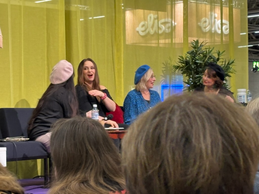Heidän keskellään hymyili tutunnäköinen tyttö ja kyltti kertoi, että haastateltavana on Satu Rämö. Matkani pysähtyi siihen. Satu kuului aikoinaan nuorisoni tuttavapiiriin. On ollut hienoa seurata etäältä hänen uraansa, ja minä, joka en ole vuosikymmeniin lukenut yhtään muuta dekkaria, olen suorastaan ahminut kaikki Hildur-sarjan kirjat. Hyvin näyttelijöiltä sujui haastattelu ja hyvin Satu vastaili.