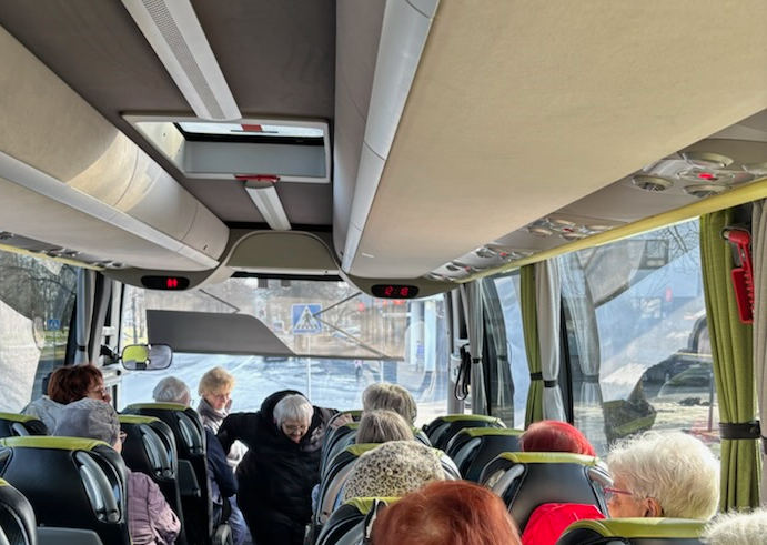 Tässä ollaan viime tiistaina kokoamassa iloista joukkoa meitä vanhuksia linja-autoon vietäväksi Somerolle uimaan, kun oma Forssan uimahalli on remontissa. Joka tiistai ollaan jo hyvissä ajoin odottamassa bussia, jonka matkaan olemme ilmoittautuneet aikaisemmin. Siinä sopii sitten jo laiturilla vaihtaa kuulumisia. Bussi tuli taas täyteen viimeistä paikkaa myöden. Useimmilla meistä on vanhuuden vaivoja ja kivut ovat tuttuja. Siksi säännöllinen vesijuoksu ja vesijumppa ovat tärkeitä. Minullakin raajoista 75% on enemmän tai vähemmän vajaakykyisiä. Molemmissa käsissä on ollut murtuma ja oikeassa polvessa on kohtalainen nivelrikko.