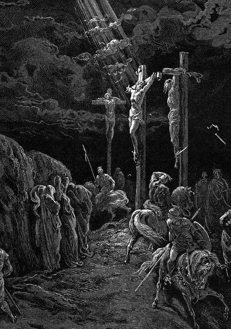Ensimmäinen muistikuva pääsiäisen ajasta on minulla keväältä, jolloin olin luultavasti neljävuotias. Kuuntelimme veljeni kanssa, kun äiti luki pitkäperjantaina isosta perheraamatusta Jeesuksen vangitsemisesta ja ristiinnaulitsemisesta. Olin käynyt pyhäkoulussa Töölön kirkossa joka pyhä, mutta Jeesuksen ristinkuolema oli minulle uusi asia. Alla on Gustav Dorenin perheraamatun kuvitusta.