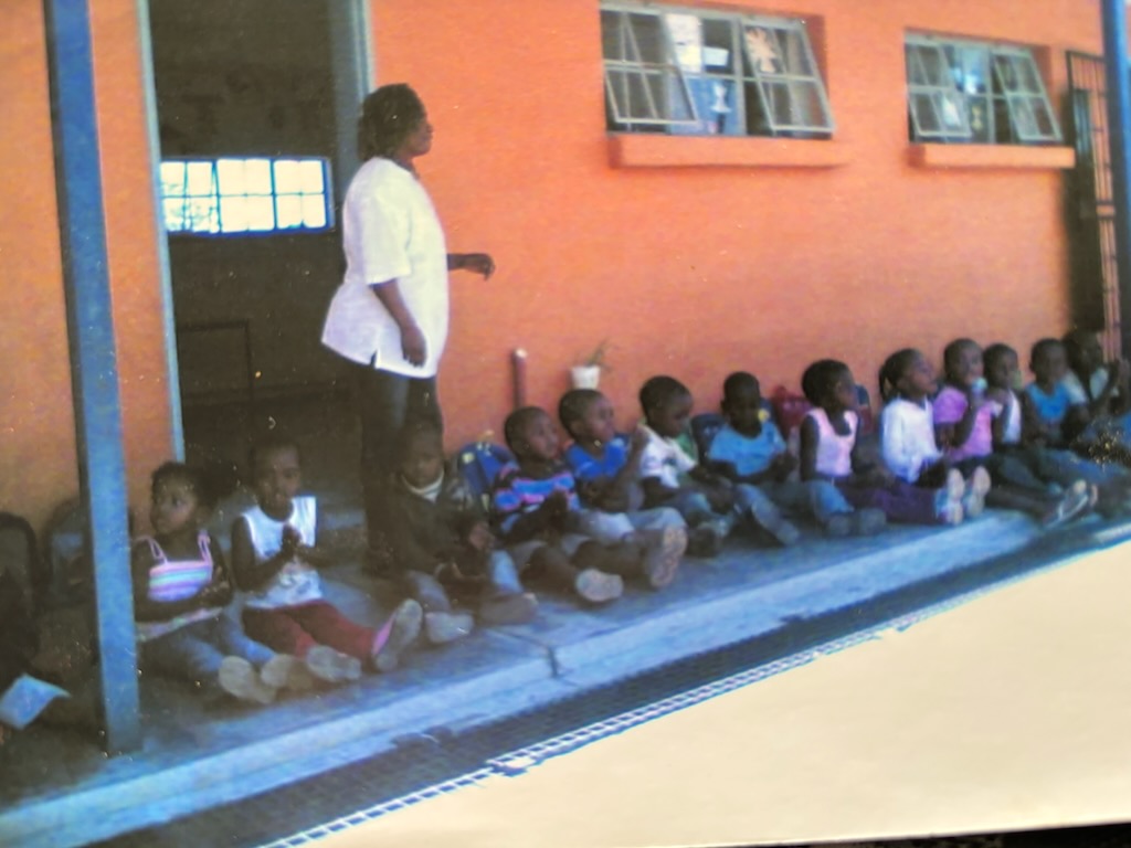 Kuvassa on namibilaisia pikkulapsia päiväkodin verannalla. Heidän sukupolvellaan on parempi elämä kuin heidän vanhemmillaan - isovanhemmista puhumattakaan.