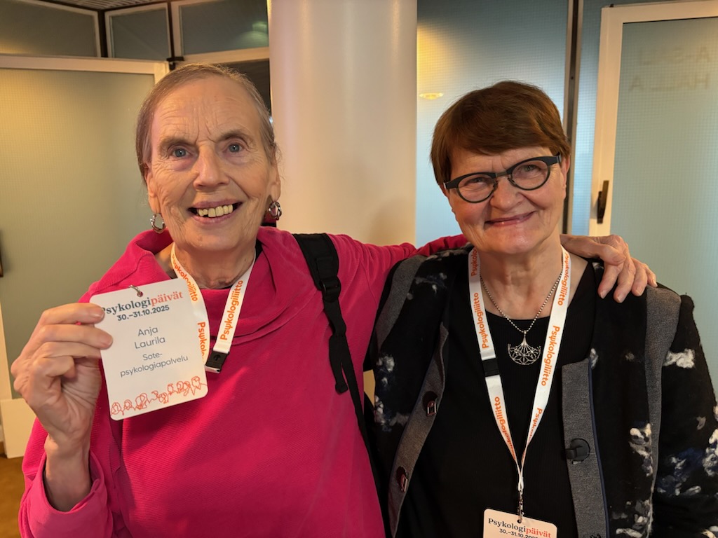 Kuvassa olen entisen opiskelutoverini kanssa Psykologipäivillä viikko sitten. Siellä me kaksi yli kahdeksankymppistä imimme oppia ja pohdimme, miten voisimme hyödyntää uutta tietoa siihen, mitä eläkevuosina teemme. Ystäväni Sirkku oli 1980-luvulla perustamassa "Psykologien sosiaalinen vastuu" -nimistä yhdistystä, joka toimii edelleen Libanonin pakolaisleirien lasten psyykkisen hyvinvoinnin tukemiseksi ja Sirkku on edelleen sen hallituksen jäsen LISÄÄ>>> https://vastuu.fi/. Itselläni on missio levittää tutkittua psykologista tietoa mahdollisimman yleistajuisesti tietokirjojen ja blogini avulla. Olen itse hoitanut omaa psyykkistä hyvinvointiani vuosien varrella kognitiivisen terapian alaan kuuluvien kirjojen avulla ja toivon, että sama näkökulma auttaisi muitakin.
