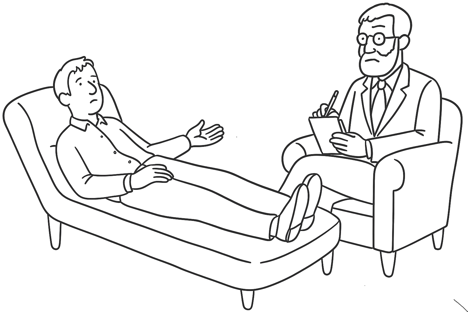 Klassisessa psykoanalyyttisessa terapiassa keskitytään käsittelemään lapsuuden perheen ihmissuhteita. Potilas puhuu ja terapeutti on paljon ääneti.