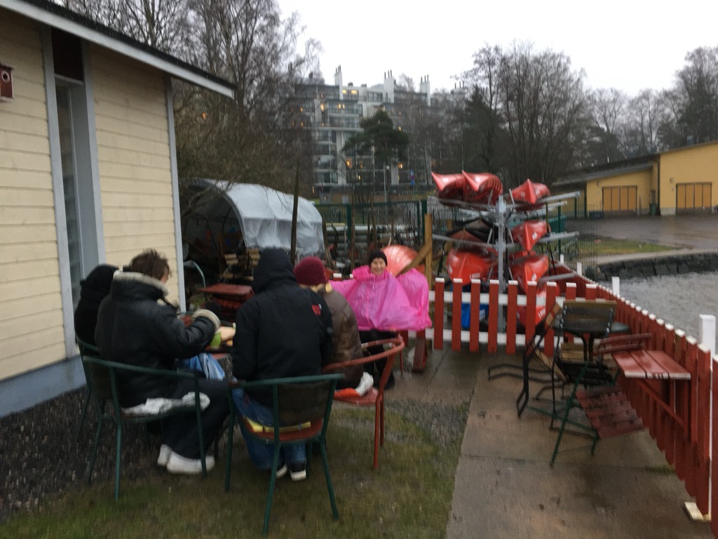 Korona-vuonna meidät yksinasuvat pakotettiin viettämään joulua yksin. Sitä edelsi useimmilla lahjojen vaihtoa ulkotiloissa. Ajelin joulua edeltäneenä sunnuntaina räntä&tihkusateessa ja viimassa Helsinkiin tapaamaan tyttären perhettä. Pikkuinen kahvila Regatta Taivallahden rannassa mainostaa olevansa auki vuoden jokaisena päivänä: "Punainen tupa ja perunamaa Helsingin Töölössä, Sibeliuspuiston ja soutustadionin välissä, meren rannalla. Uunituoretta korvapuustia ja maalaisromanttista tunnelmaa tarjolla ympäri vuoden, tervetuloa"! Tieto mahdollisuudesta tavata muita laillisesti ulkoilmassa kahvilan piha-alueella, oli kiirinyt monen muunkin kuin meidän porukan korviin. Kahvilan ulkopuolella oli pitkä jono, vaikka ei varsinainen terassi-ilma ollutkaan. Meri velloi vieressä ja taivaalta tihkui vettä. Tunnelma oli kaukana maalaisromanttisesta. Tunteeni olivat aallonpohjassa. Neljä päivää myöhemmin yksin vietetty joulu sujui ihan hyvin. En tuntenut oloani ollenkaan yksinäiseksi.